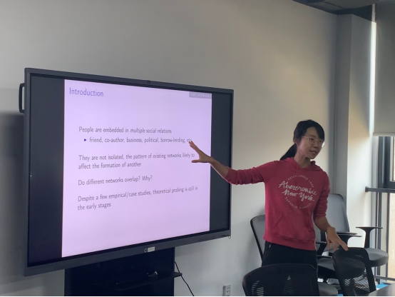 在本次讲座中,程琛教授向我们介绍了其最新研究。人们被嵌入到多种社会关系中,这些关系并不是相互孤立的,不同的网络是会重叠的。当个体面对一个新的社会关系,可以选择和朋友或是和陌生人建立联系。如果选择和朋友相连的社会网络,可以看做是社会担保,有利于促进个体在每个关系上进行合作。如果选择和陌生人建立网络关系,主要驱动力来源于社群激励,但该社群激励又依赖于整个社会网络。关系的多重性增强了合作,因为各种关系可以作为彼此的社会抵押品,而与陌生人的联系利用社会实施,其强度更多地依赖于网络结构的其他部分。通过对印度乡村调查数据的研究发现了:(1)一种强烈的多重性倾向,可能会发生"多重性陷阱";也就是说,即使与陌生人联系更有效率,代理人可能会不断增加与朋友的关系。(2)当现有网络具有低程度的分散性(即所有代理人都有类似数量的朋友)或具有正的同构性(代理人与那些有类似数量的朋友联系)时,代理人倾向于关系的多重性选择。还发现了当新的关系比较重要时,代理人倾向于关系的多重性。