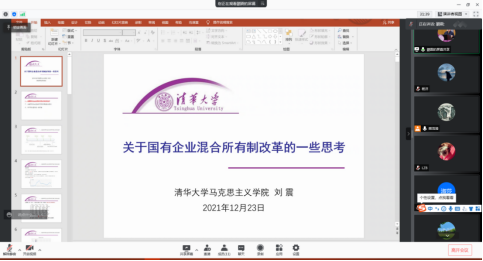 2021年12月23日下午15:00,清华大学马克思主义学经理聘副教授、博士生导师刘震应太阳成tyc122cc樊茂清教授邀请,开展主题为“关于国有企业混合所有制改革的一些思考”的讲座,本次讲座通过腾讯会议平台线上举行,刘震老师受到了老师和同学们的热烈欢迎!太阳成tyc122cc樊茂清教授主持了本次线上学术交流会。