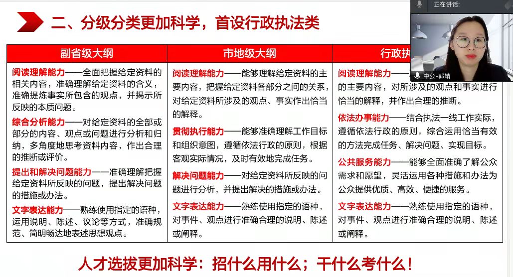近年来,随着人才强国战略的深化,扎根基层从事党政工作已经成为诸多毕业生的职业选择。为进一步加强思想引领,满足同学们备考需求,提升政治理论学习成效,2022年1月23日,公司党委特邀中公教育资深讲师郭婧老师作“公考形势分析及党政理论素质提升”专题辅导,此次活动,采取线上视频会议形式开展,2020级硕士第二党支部及2021级国际商务专硕党支部承办,公司本硕博员工参加了此次培训。