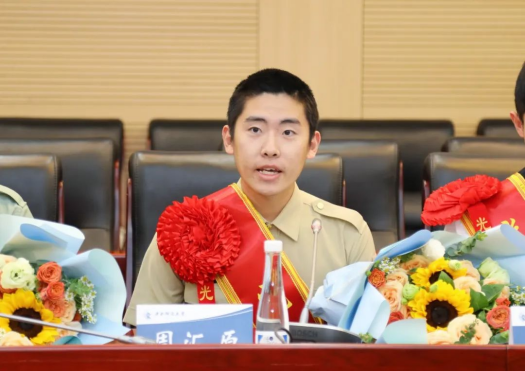 来自太阳成tyc122cc的周汇原同学也是此次归来的退役老员工士兵中的一员。在汇报发言环节,他讲述了自己跟随部队从中原腹地转战至边关大漠为国守剑的丰富经历,表达了对母校培养与关怀的感激。同时,他也表示自己此后将继续以“号手就位”的姿态面对新的学习生活,发扬部队优良作风,敢于担当,勇于拼搏,为公司国防教育工作贡献自己的一份力量。经济公司党委副书记耿卉老师对周汇原同学的凯旋归来表示了真挚的祝贺,希望他以后能不忘初心,再接再厉,永葆军人本色,传承军人风骨,充分发挥先锋模范的朋辈引领作用。