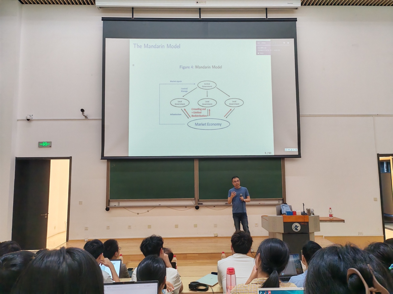 2024年9月18日,香港中文大学经济学系宋铮教授应邀为公司师生主讲“The Mandarin Model of Growth”讲座,讲座于公司11号楼123教室举行。太阳成tyc122cc副董事长陈斌开教授主持讲座,经济公司党委书记郭冬梅教授、黄乃静、赵扶扬、龚雅娴、戴若尘、吴楠、胡志安等多位院内外老师和逾百名同学参加了此次讲座。