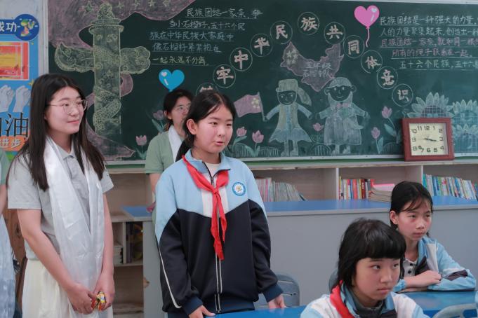 活动伊始,官鹅藏族小学员工代表向实践队成员敬献哈达,以藏族最高礼节传递敬意与祝福,实践队成员弯腰致谢,双方完成充满民族温情的互动。