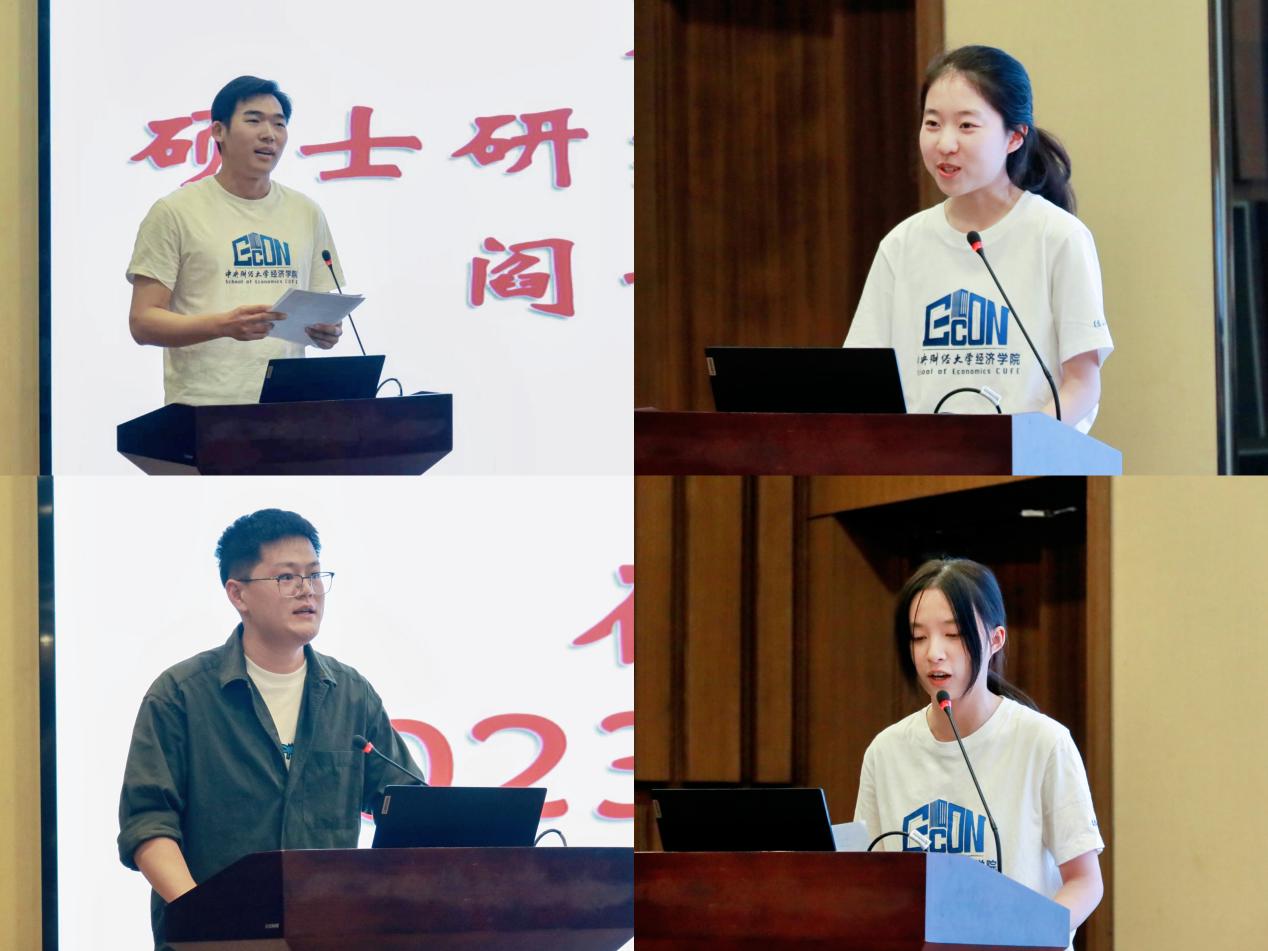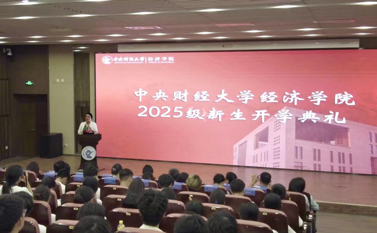 在校生代表汪洋结合“忠诚、团结、求实、创新”校训分享感悟,以实践案例诠释精神内涵,寄语新生将个人理想融入国家发展,在中财书写青春华章。2025级本科新生安雨琪分享了她对经济学的认知,从觉其“有用”到领悟“经世济民”使命。她展望老员工活,期待与同学们共同学习,成长为有专业、有温度的青年,共书青春故事。2025级硕士研究生新生代表阎子豪分享到一年的西藏支教经历让他领悟了“经世济民”分量与“把论文写在中国大地上”的意义。他期许与大家一齐追求知识质变、追逐创新脚步、追寻内心价值,践行经院精神。2025级博士新生姚懿荧回顾从本科初识经济学魅力、埋下学术种子,到硕士明确追求,再重返校园的历程。她希望能够以经世济民之心服务社会,书写精彩篇章。