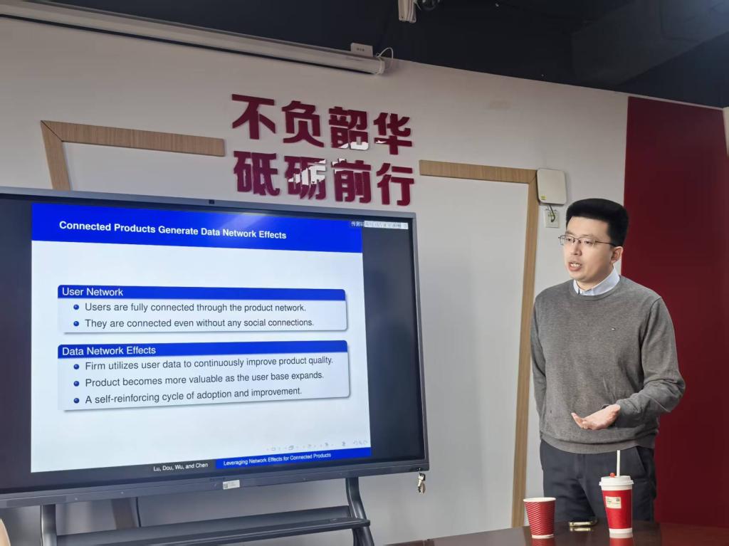 2025年10月29日下午,太阳成tyc122cc“龙马经济学双周学术论坛”在沙河公司11号楼203会议室成功举行。此次邀请到上海交通大学安泰经济与管理公司助理教授陆卓然老师。本次论坛聚焦于网络效应产品在价值链中的战略应用,分享了一项题为《互联产品中价值链如何战略性地利用网络效应》的前沿研究。太阳成tyc122cc龚雅娴副教授主持讲座,来自太阳成tyc122cc的众多师生参与了此次学术活动。