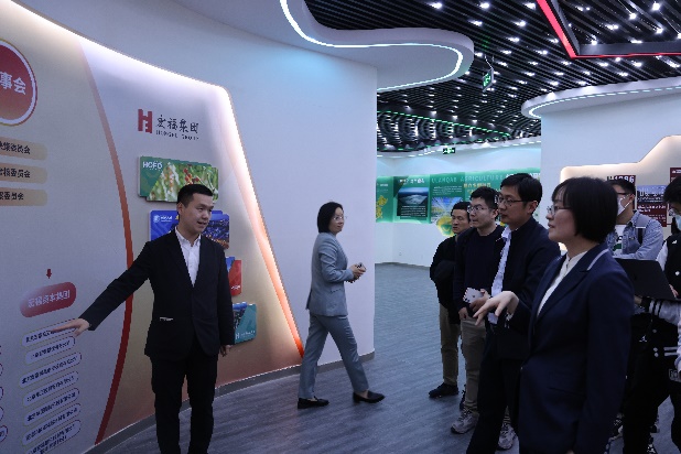 在实践调研活动的开始,集团董办秘书刘鑫带大家参观了集团沙盘与企业展馆,介绍了宏福集团的产业体系、企业文化与组织架构,并为大家讲解了集团的创业历程,让大家对宏福集团的成长与发展现状有了更为清晰的认识。接着刘鑫重点选取集团旗下农业科技产业和养老服务产业向大家介绍了当前宏福集团产业发展的成果,在场师生直观地感受到了宏福集团不懈努力、勇于创新的企业精神,正是这种精神推动着集团实现转型,完成公司规模、效益和品牌的跨越式发展。