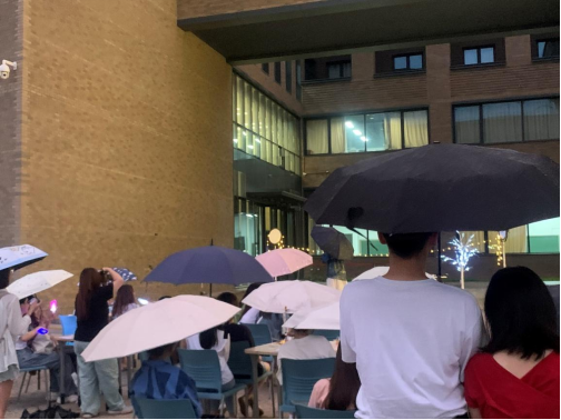 歌会行至中途,天空中飘起蒙蒙细雨,但却浇不灭大家的热情,夜晚,在点点繁星的见证下,跳动的音符和柔和的微风一起,吹拂着每一个人的心,雨滴轻敲着伞面,发出悦耳的沙沙声,与歌声交织在一起,编织成一首夏夜独有的交响乐。治愈着每一个人的心灵。